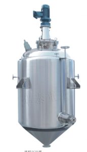 本設備是由附夾套的橢圓封頭,錐形底的圓筒體,內裝三葉式攪拌以及特殊的微調旋出液管等組裝而成,中藥水煎濃縮采用加入酒精配成一定醇度的液體,然后常溫,低溫冷凍沉降進行液固分離,以提高中藥提取液的純度及澄明度。
